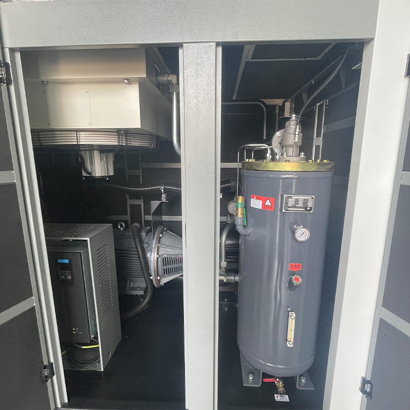 Bíonn tionchar ag comhbhrú dhá chéim ar leibhéil torainn tríd an ualach oibre comhbhrú a dháileadh thar dhá chéim ar leith. Maidir leis an gcomhbhrúiteoir scriú cúpla micrea-ola 100HP, déantar an gás a chomhbhrú de réir a chéile seachas i gcéim ardbhrú amháin, ag laghdú déine na luaineachtaí brú inmheánacha. Mar thoradh ar leibhéil luaineachta níos ísle bíonn próiseas comhbhrú níos míne agus giniúint níos lú torainn de bharr athruithe brú tobanna. Bíonn tionchar ag próifíl an rotor, atá optamaithe chun sceitheadh a laghdú agus éifeachtúlacht séalaithe a fheabhsú, ar iompar fuaimiúil inmheánach freisin. Le suaiteacht laghdaithe agus patrúin sreafa aeir cobhsaí, táirgeann an comhbhrúiteoir torann aerdinimiciúil níos ísle. Tacaíonn an timthriall comhbhrú cothromaithe seo le próifílí fuaime comhsheasmhacha le linn oibriú fadtéarmach, atá tairbheach do shuíomhanna tionsclaíocha ina bhfuiltear ag súil le gníomhaíocht trealaimh leanúnach.